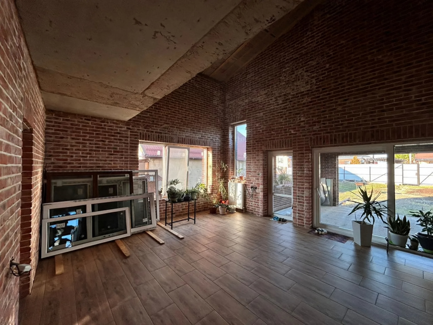 Продам двухэтажный дом 241 кв.м. на участке 6 соток. В доме 4 комнаты, 2 санузла.  Дом полностью кирпичный, с несущими стенами и перегородками. Эстетическая отделка в стиле «баварская кладка» как на фасаде, так и в большом холле с «вторым светом» (потолки до 6 метров). Дизайн выполнен в современном лофт-стиле. Дом разделен на две части: большую и малую, что позволяет удобно организовать пространство.  В поселке развитая инфаструктура: школа, сад, парк, клуб, аптека, сетевые магазины, почта, амбулатория.