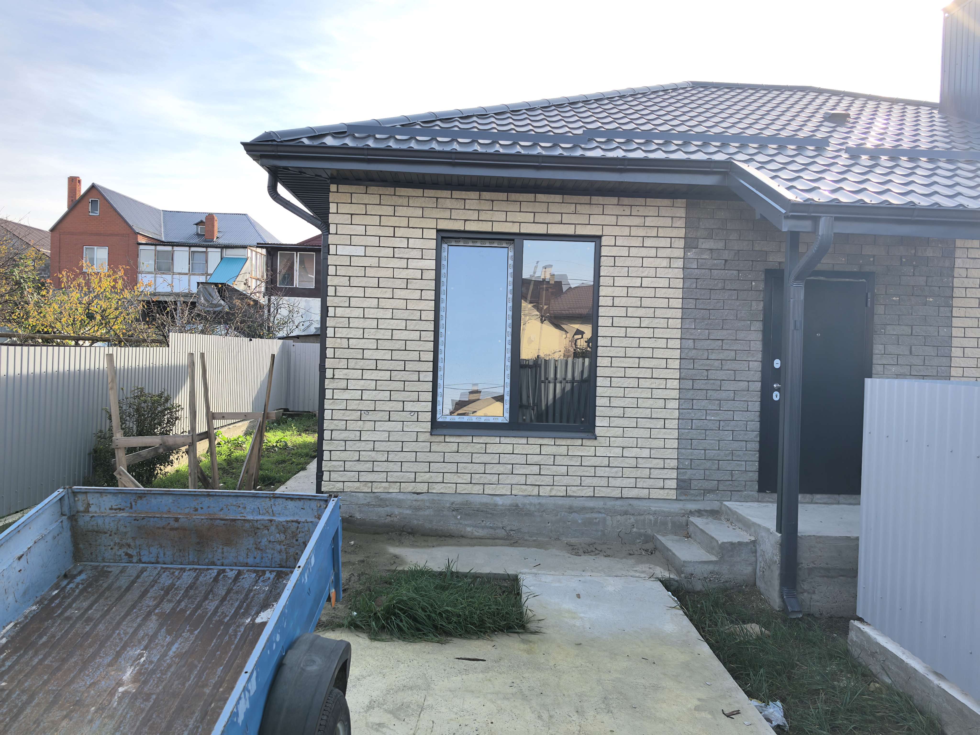 Продам 1-этажный дом, общая площадь 85 кв.м. В доме кухня-гостиная с терассой, три спальни, с/у. На данный момент дом полностью готов, начата внутренняя отделка. Дом будет сдаваться с качественной предчистовой отделкой. Возможен ремонт под ключ ! Земельный участок 3 сотки, перед домом парковочное место. Коммуникации: свет, вода скважина, газ по меже участка. В шаговой доступности от дома, школа, детсад, сетевые магазины, Магнит и Пятерочка, остановки.