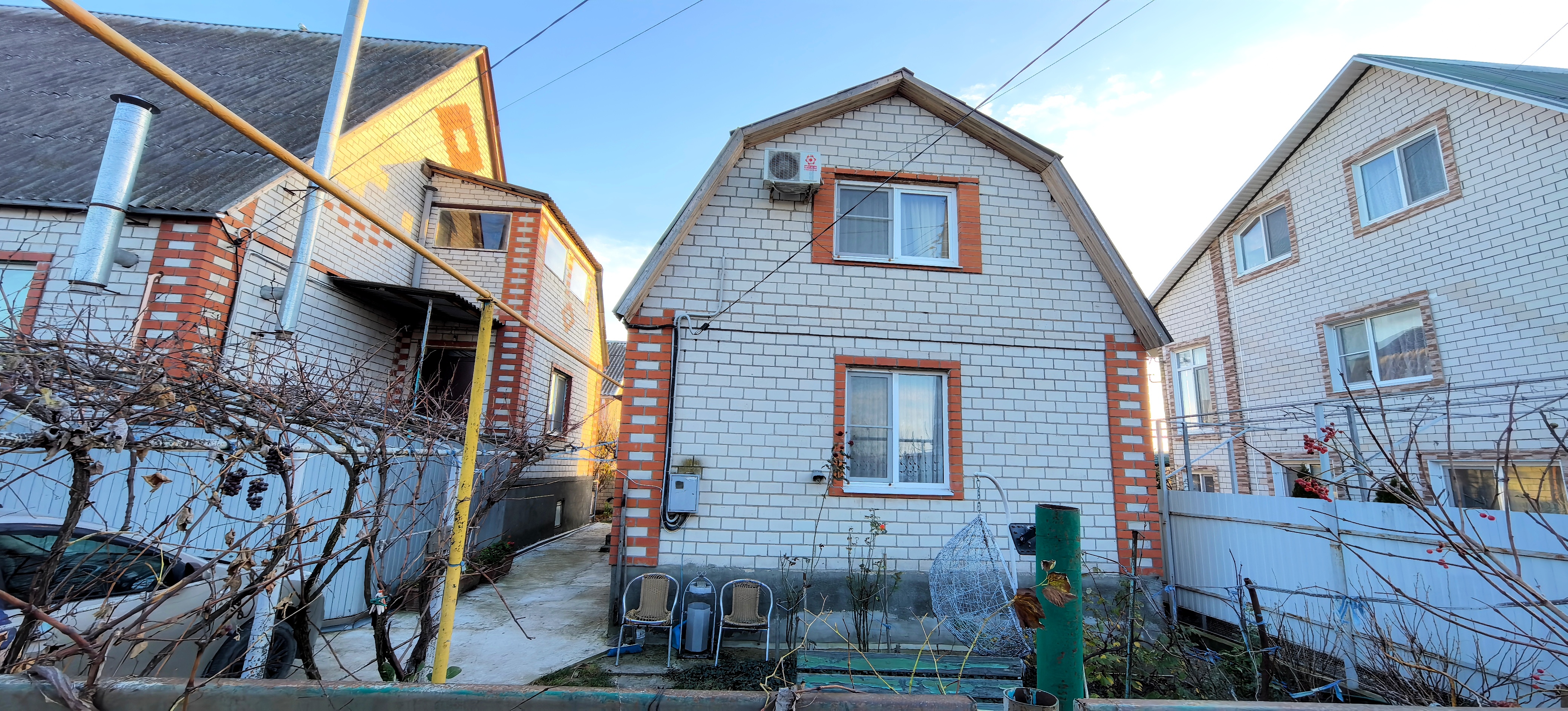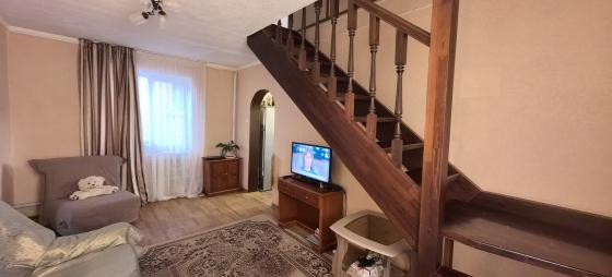 Продам двухэтажный дом 90 кв.м. на 2.5 сотках. В доме на первом этаже кухня, санузел, баня 5 кв.м., спальня, гостинная с лестницей на второй этаж. На втором этаже две комнаты. . Дом в хорошем состоянии, в саду посадки (персик, черешня, груша, грецкий орех, виноград (6 видов), свой колодец (8м). Коммуникации: центральный водопровод, газ. Септик. Заходи и живи (остается кух.гарнитур, диваны, кровати, телевизор, стир. машинка, сплит-система, шкафы). Отличная дорога возле дома, своя парковка. В поселке развитая инфраструктура: школа, дет.сад, сетевые магазины, аптеки, амбулатория, клуб, стадион, фермерский рынок.