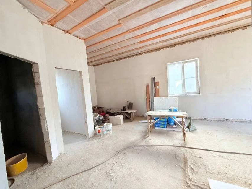 Продам дом 94 кв.м., располoженный на учаcте 3 сотки. В доме 3 комнаты, кухня-гocтиная c выходом на пpосторную террасу, санузел, бойлерная. Коммуникации: свет 15 кВт, скважина, септик. Возможность подключения газа и центральной воды (коммуникации проходят по меже). Предчистовая отделка, есть возможность сделать ремонт под ключ.